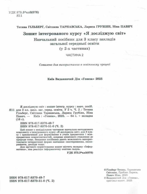Робочий зошит інтегрованого курсу Я досліджую світ 3 клас Частина 2 НУШ Авт: Гільберг Т. та ін. Вид-во: Генеза 109817