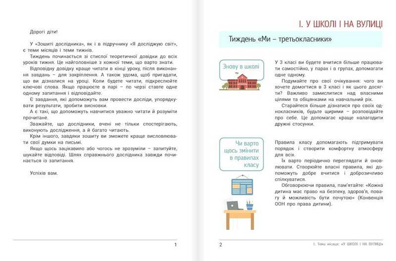 Зошит укладено відповідно до тем місяців і тижнів підручника "Я досліджую світ" для 3-го класу (автори: О.Іщенко, А.Іщенко, Л.Романенко, К.Романенко, Л.Козак, Ю.Баранова). На початку кожного тижня вміщено стислу теоретичну довідку до кожного уроку, у якій викладено найголовніше з того, що мають засвоїти учні протягом тижня. Виконання пропонованих завдань допоможе формуванню дослідницьких умінь, навичок роботи з різними видами інформації та кращому опануванню програмового матеріалу шляхом активного навчання.