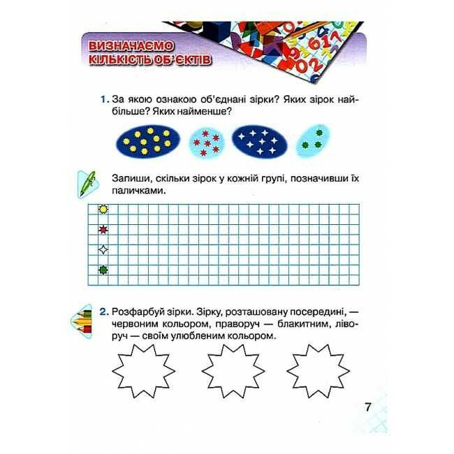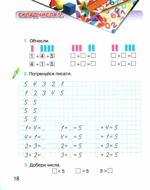 Зошит допоможе першокласникам оволодіти навичками правильного написання цифр, математичних знаків тощо.