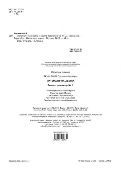 Зошит-тренажер Математична абетка 1 клас Частина 1 НУШ До програми Світ, в якому я живу Авт: Якименко С.І. Вид-во: Богдан 20650