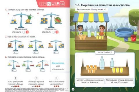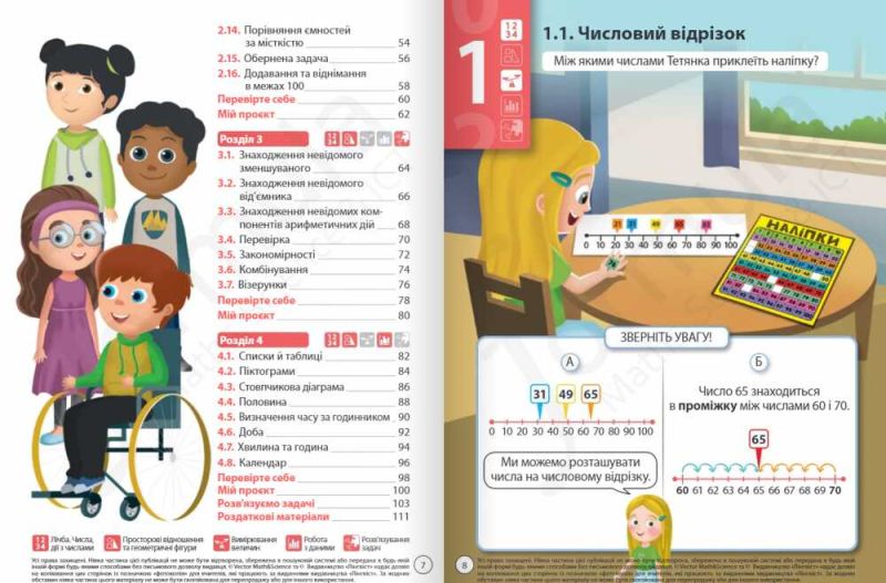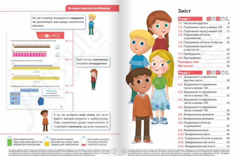 - Продуманий дизайн. Чітка повторювана структура та простий апарат орієнтування в комплексі з яскравими ілюстраціями роблять посібник зрозумілим і привабливим для школярів та школярок