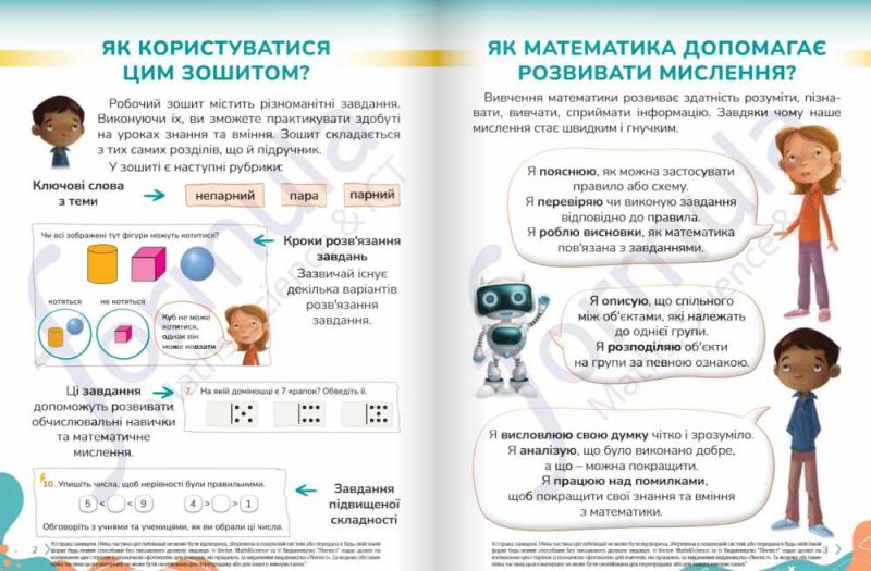 Адаптоване ліцензійне видання від міжнародного видавництва Cambridge University Press та українського бренду Formula, створеного видавництвом «Лінгвіст». Робочий зошит призначений для вивчення математики в 1 класі, розроблений згідно з Державним стандартом початкової освіти . У виданні розкривається методика, яка базується на діяльнісному підході, розвитку критичного та креативного мислення, комунікації та співпраці. Виклад навчального матеріалу представлено в доступній, чіткій та ілюстративній формі відповідно до вікових особливостей учнів. Відповідає типовій освітній програмі початкової школи під керівництвом О. Я. Савченко (1-2 клас). Рекомендовано Міністерством освіти і науки в Україні.