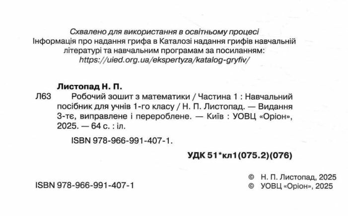 Зошит схвалено до використання в загальноосвітніх навчальних закладах комісією з педагогіки та методики початкового навчання Науково-методичної ради з питань освіти Міністерства освіти і науки України відповідним листом ДНУ «Інститут модернізації змісту освіти».