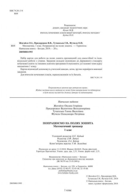 Тренажер Математика Попрацюємо на полях зошита 1 клас НУШ Авт: Жигайло О.І. та ін. Вид-во: Богдан 78809