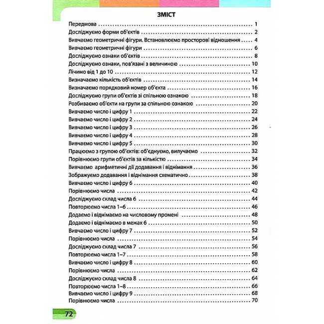 Посібник складений відповідно до Типової освітньої програми, розробленої під керівництвом О.Я. Савченко, і є складовою навчально-методичного комлексу з математики для 1 класу авторів С.О. Скворцової, О.В. Онопрієнко. До комплексу входять видання: навчальний зошит у 4 частинах, роздавальні матеріали, дидактичні матеріали для практичних робіт, розробки уроків.