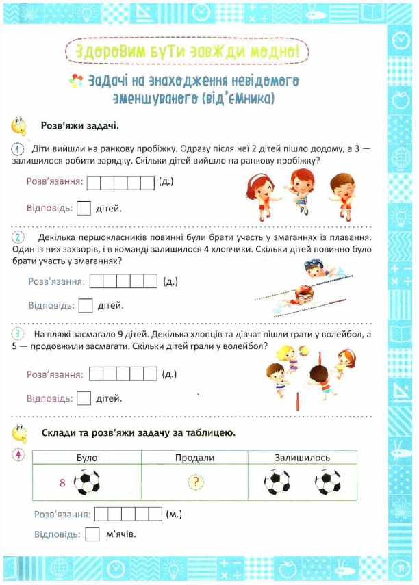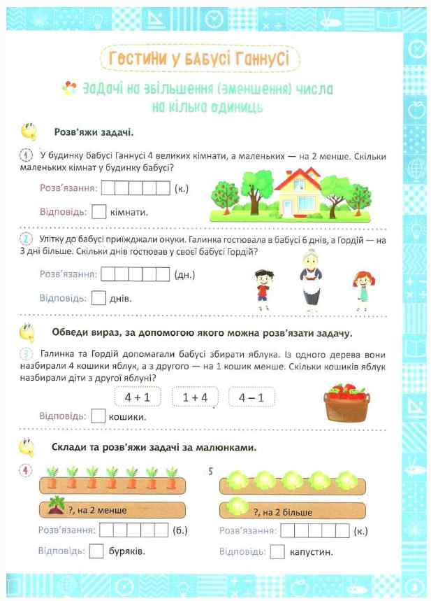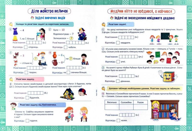 Кожна книжка цієї серії спрямована на формування у дітей досвіду використання математичних знань для розв'язування навчальних і практичних задач.