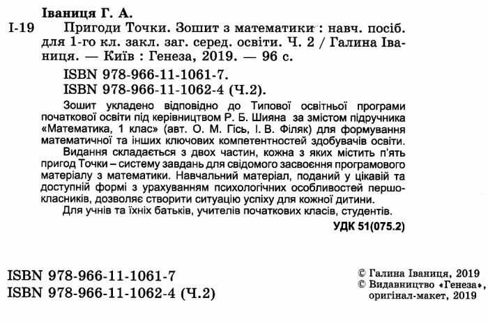 НУШ Робочий зошит Пригоди точки Математика 1 клас До підручника Гісь Частина 2 Іваниця Г. Генеза
