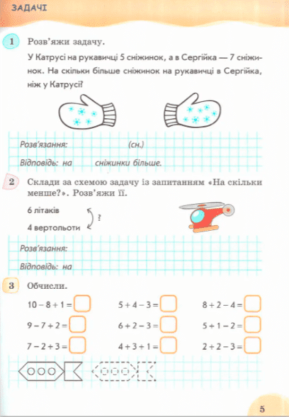Зошит складається з двох частин, 2 частина ІІ семестр навчання. Містить різноманітні завдання на узагальнення та закріплення математичних умінь і навичок, формування й розвиток в учнів логічного мислення; завдань творчого характеру. Завдання мають ігрові моменти, відображають реальні життєві ситуації та заохочують дітей до читання.