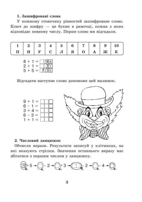 Математика з усмішкою це серія оригінальних зошитів для початкової школи. Гадаємо, дітей зацікавлять завдання, подані у нестандартній формі, та задачі, що, власне, є веселими історіями, в яких діють кмітливі і симпатичні герої в кожному зошиті інші Цей зошит містить числові кросворди, магічні квадрати та задачі, героями яких є клоуни Бім і Бом. Зразки виконання завдань подано на сторінках 3 і 4.