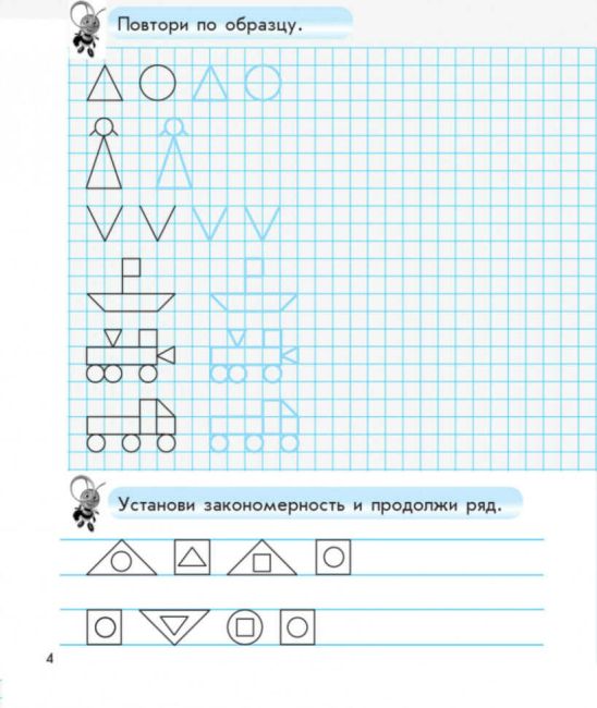 Тетрадь-шаблон по математике предлагает в интересной игровой форме систему упражнений по формированию графических навыков детей в 6-7-летнего возраста.