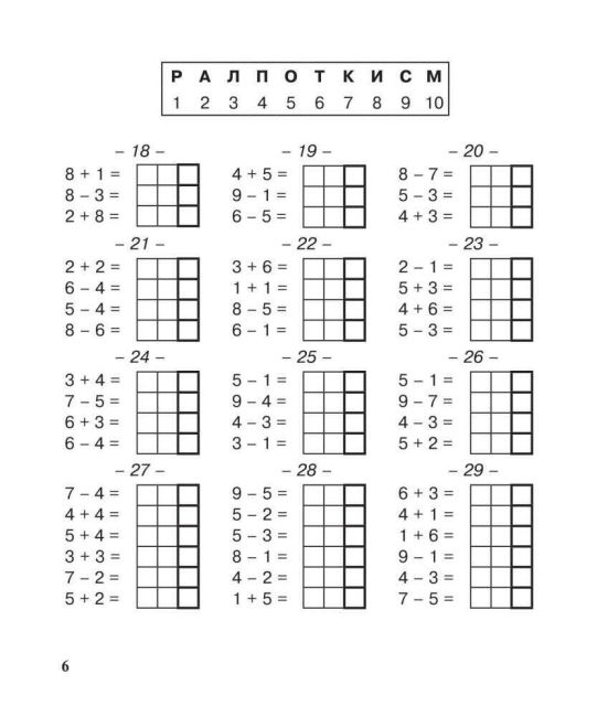Посібник відповідає Державному стандарту початкової освіти та типовим освітнім програмам. Завдання у пропонованому зошиті допоможуть швидко та ефективно опанувати правила додавання та віднімання в межах двадцяти.
