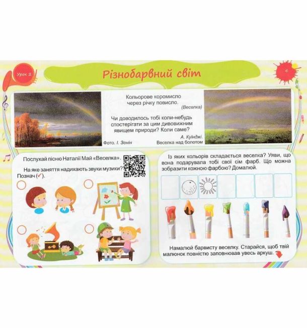 Альбом-посібник Мистецтво Барвограй 1 клас До підручника Рублі Т. НУШ. В альбомі-посібнику запропоновано репродуктивно-творчі та художньо-творчі завдання і вправи інтегрованого характеру для уроків мистецтва в 1 класі, розроблені відповідно до чинної програми МОН України з інтегрованого курсу Мистецтво для 1–4 класів та спрямовані на формування ключових і предметних компе-тентностей школярів.