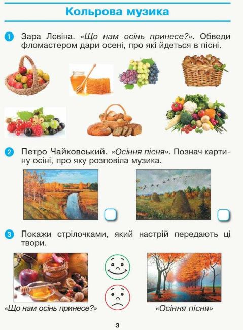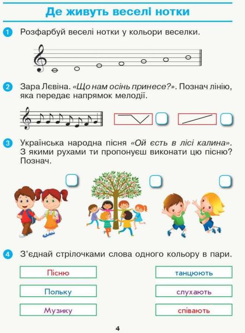 Робота із зошитом навчить першокласників сприймати музичні твори, відчувати характер і настрій музики, створювати та виконувати прості ритмічні супроводи; розвине художній смак та любов до українського музичного мистецтва.