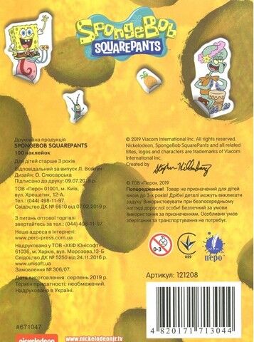 100 яскравих веселих наклейок для дітей з Губкою Бобом.