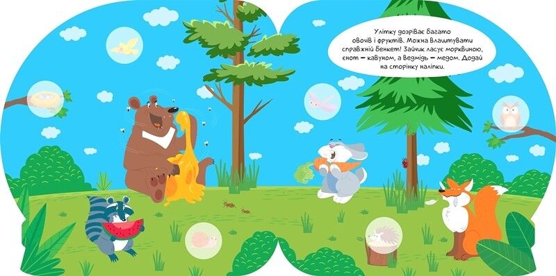 Представляємо до вашої уваги чарівну книжечку з наліпками у вигляді кришталевої кулі. На її сторінках ви побачите, як люди та тварини радіють літу та весело проводять час. Вони купаються, засмагають, ласують фруктами та ягодами. А за допомогою наліпок малюк доповнюватиме малюнки та розвиватиме дрібну моторику, кмітливість, уяву, логіку та фантазію.