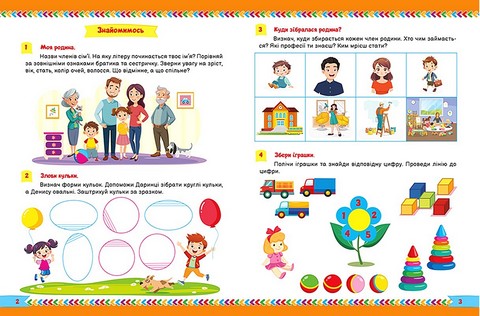 Книги відповідають програмі розвитку дитини дошкільного віку «Українське дошкілля». Посібники призначені для спільних занять не тільки батьків і дитини, а й педагога та дитини. На сторінках зібрані завдання з логіко-математичного, пізнавального, мовленнєвого, соціально-морального розвитку.