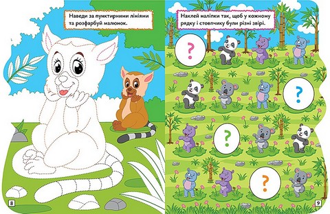 Це серія книжок для справжніх дослідників і любителів творчості. Цікаві завдання, героями яких є веселі й кумедні тваринки, спонукатимуть малечу до застосування логіки, фантазії та уваги. Яскраві ілюстрації, які можна доповнити за допомогою кольорових наліпок, сприятимуть розвиткові уяви й естетичного смаку малюків. Завдяки цим книжечкам ви разом із дитиною зможете відчути себе шукачами пригод і відкриттів.