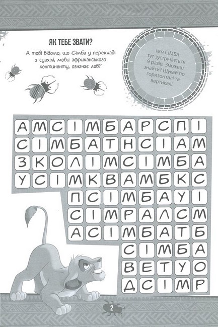 Приєднуйся до Сімби, малого допитливого левеняти, та стань свідком його неймовірних пригод. Олівці та фломастери допоможуть тобі розфарбувати його світ у найяскравіші кольори, а барвисті наліпки доповнять творчий процес.