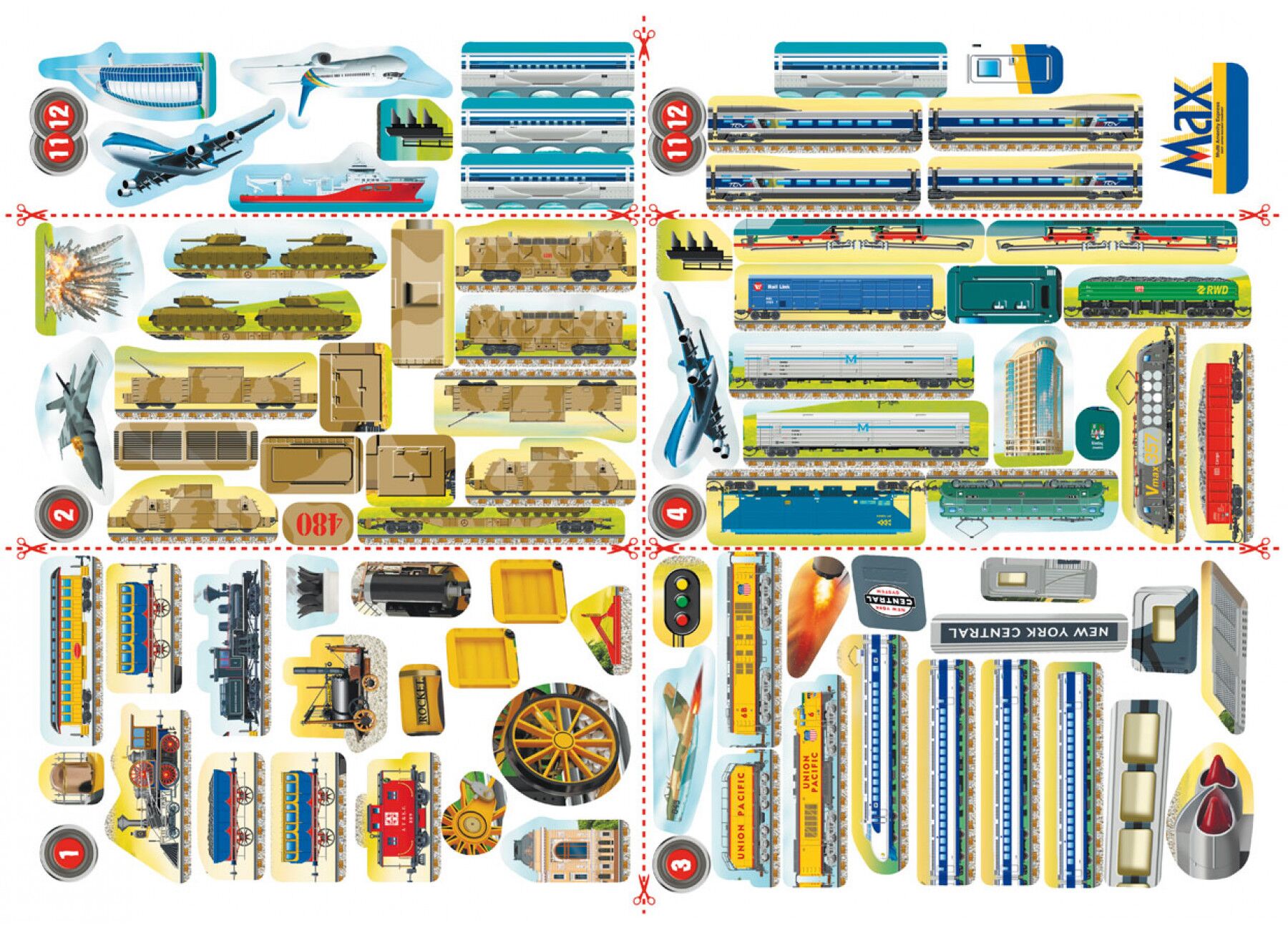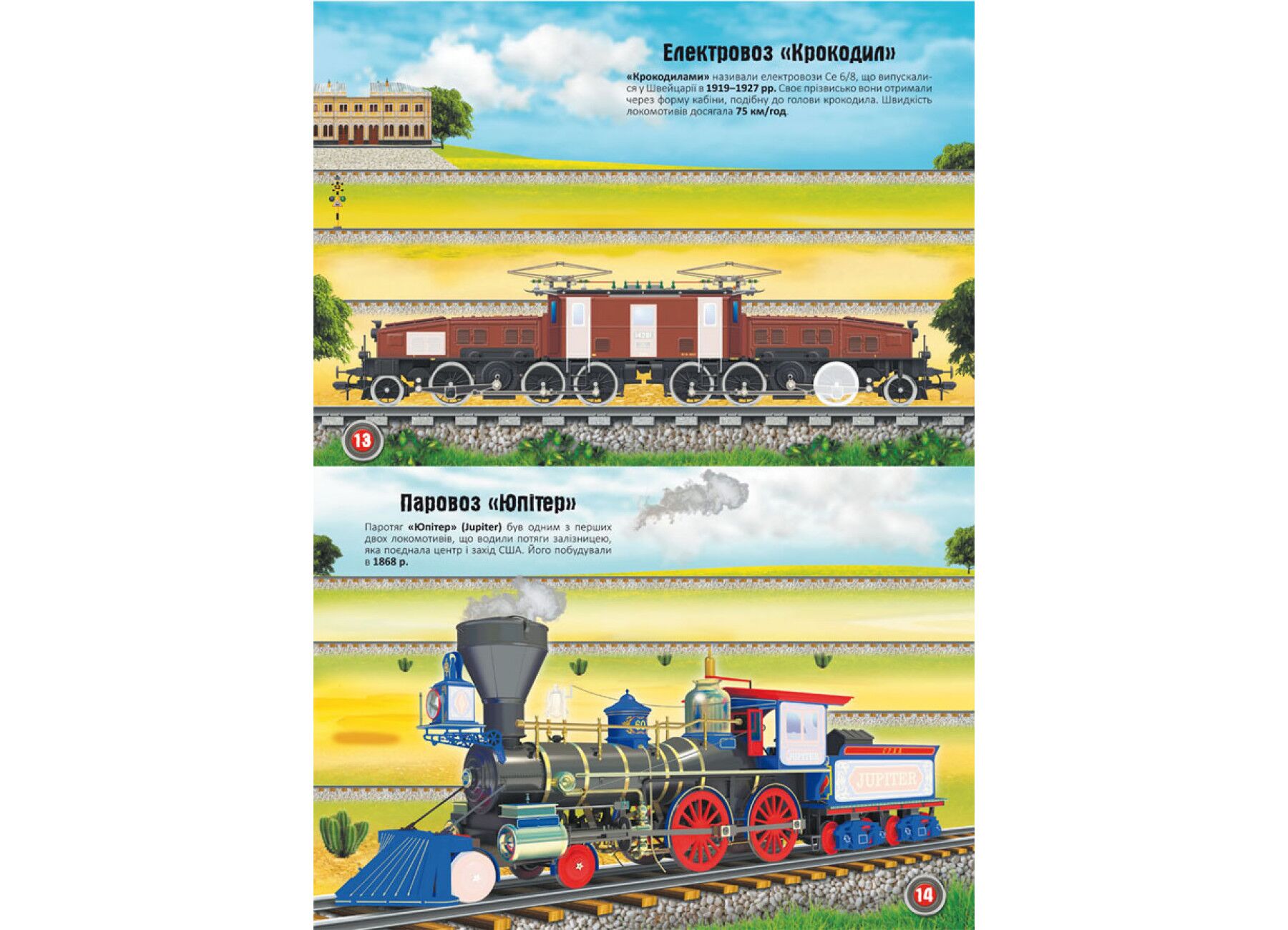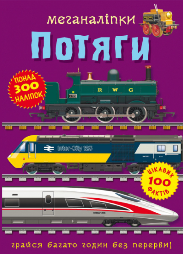 Хутчіш зазирни в книжку, щоб дізнатися про найвідоміші потяги в історії! Ти познайомишся з першими паровозами, локомотивами-рекордсменами й сучасними швидкісними електропоїздами. Фантазуй, створюючи власний світ залізничного транспорту! Тобі стануть у пригоді понад 300 меганаліпок.Використовуй як підказку зазначені поруч із ними номери сторінок.