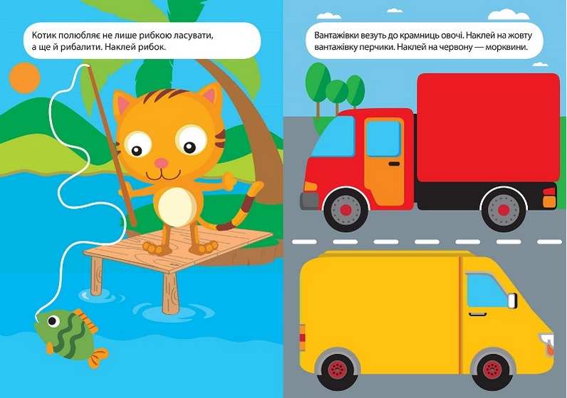 Яскраві, кольорові ілюстрації виховуватимуть естетичний смак. На кожній сторінці малюк зустріне відомих йому тваринок і зможе погратися з ними за допомогою наліпок.