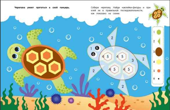 Все наклейки строго геометрических форм, но стоит проявить фантазию и они превратятся в морских животных! Книги этой серии развивают воображение малыша, мелкую моторику, пространственное мышление и логику, помогают выучить формы и цвета.