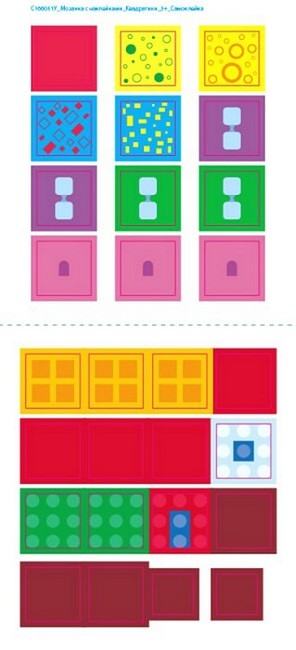 У книжці «Квадратики» малюк наклеюватиме наліпки відповідної форми на малюнки й у такий спосіб закріплюватиме уявлення про квадрат, а на додачу ще й весело проведе час!