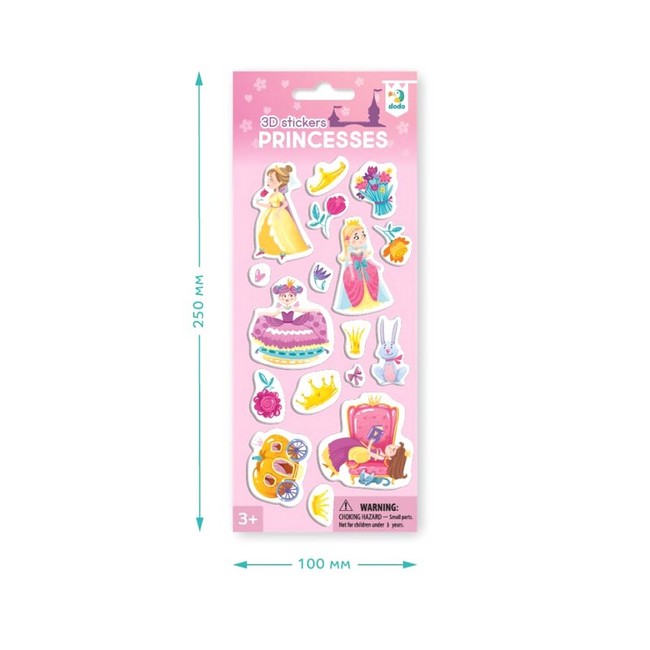 3D веселощі та краса! На цих наліпках — чарівні милі принцеси. Вони збираються на бал, оточені тваринками та красою. Хіба такі наліпки не Ідеальні для маленьких чарівниць?