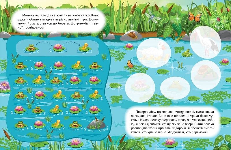 У книзі "Літо в лісі" малюк знайде улюблених тварин, дізнається, що вони роблять у цю пору року, пограється з ними за допомогою наліпок. Також у виданні запропоновані завдання на розвиток уваги та логічного мислення. Особливо цікаво дитині буде спостерігати, як змінюється ліс, за тим, як зростають тваринки протягом усіх чотирьох пір року в книжках серії "Наклей і дізнайся".