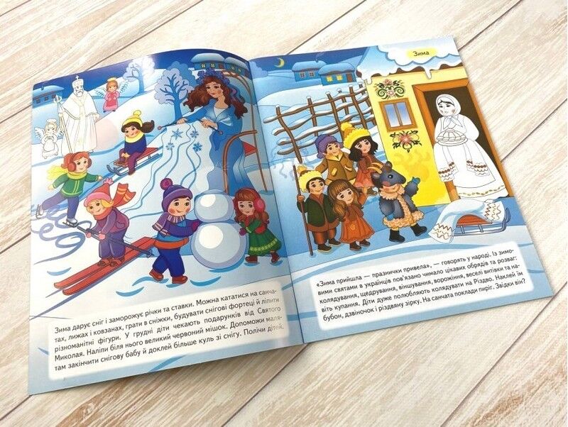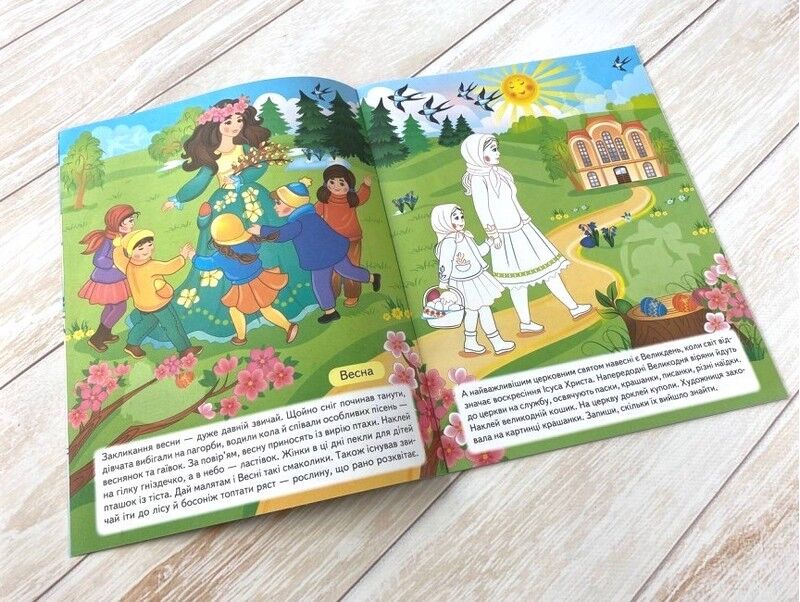 Дітям від 3 років для навичок малювання – розфарбовуємо великі контури із зображенням народних свят. Цікавий, пізнавальний текст великими літерами у розвиток самостійного читання. Любов до батьківщини починається із захоплення українськими книжками!