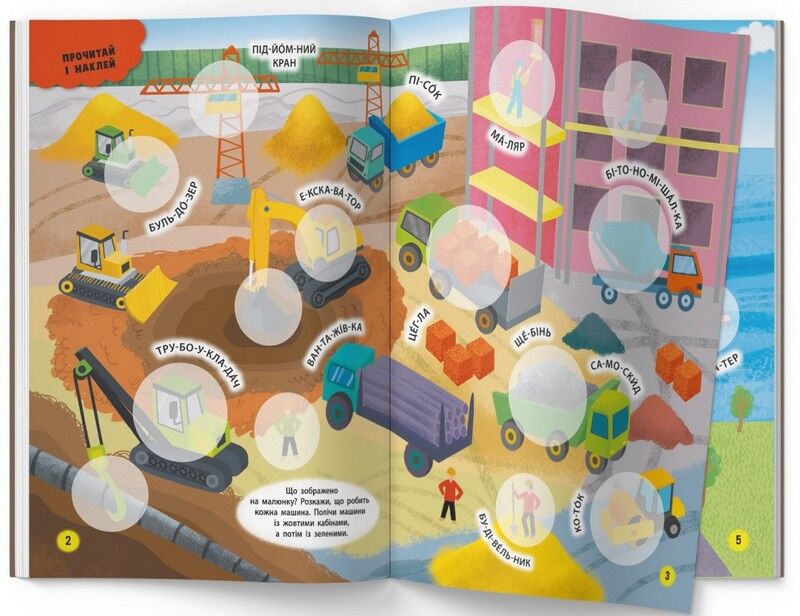 Розглядаючи яскраві картинки й читаїочи підписи до них, маліок буде знайомитися з новими словами й основами складоподілу, а наклеюючи наліпки, — поліпшувати дрібну моторику пальчиків. Пізнавайте світ та готуйтеся до школи разом із нами!