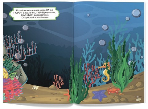 Хутчій зазирни в нашу книжку, щоб познайомитися з мешканцями морів та океанів. Під час мандрівки в підводний світ на тебе чекатиме багато цікавих завдань. Виконати їх допоможуть 36 барвистих розвивальних наліпок. За підказку тобі правитимуть зазначені поруч із ними номери сторінок.