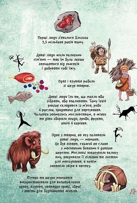 На світі є печера. У печері є люди. Яке їхнє життя? Серія «Kids creative» запрошує дошкільнят помандрувати в часи первісних людей і дізнатися цікавинки з їхнього життя: як одягалися печерні люди, як розпалювали багаття, яку тварину приручили першою?.. Яскраві багаторазові наліпки закликають до активності під час читання: дитина зможе самостійно доповнити наліпками ілюстрації, що так завбачливо не домалював художник.