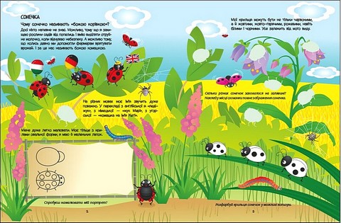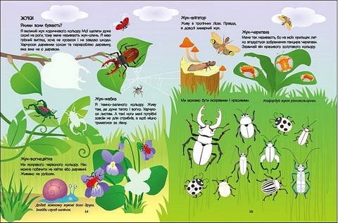 Десь на луках і полях живе численна кількість різних істот: більших і менших, хижих і дружніх, яскравих і непомітних, таких, що літають, стрибають і повзають. А ще яких? Дізнавайся на сторінках нашої активної книжки. Крім цікавих запитань і відповідей ти зможеш спілкуватися з героями через ігрові завдання з малювалками, ходилками, наліпками. Також відео з виготовлення різних творчих поробок з образами персонажів книжки. Обирай таємничий світ для дослідження і гри.