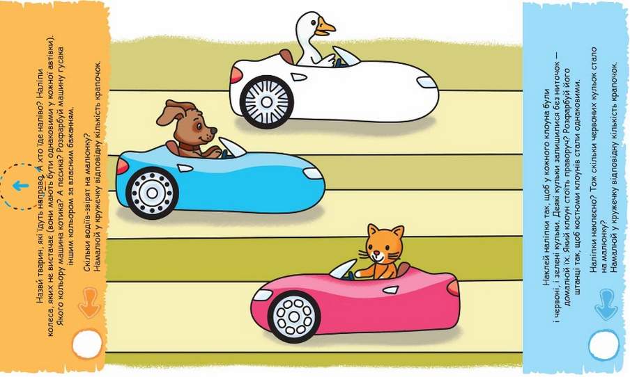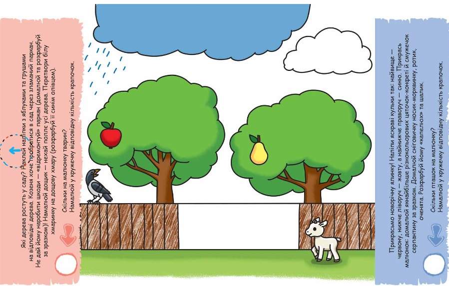 У завданнях використано ілюстрації для розфарбовування з товстим контуром, щоб робота малюка з олівцями була приємною і легкою.
