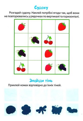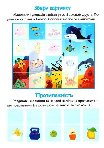 У цьому виданні дитина познайомиться з тваринками та дізнається цікаві факти про них, потренується в лічбі й читанні, навчиться правильно визначати колір, форму й розмір, виконає розвивальні завдання, а також потренує увагу та дрібну моторику.