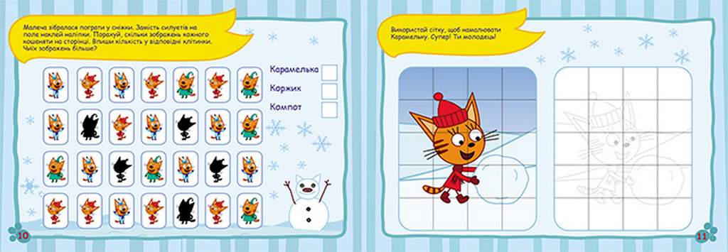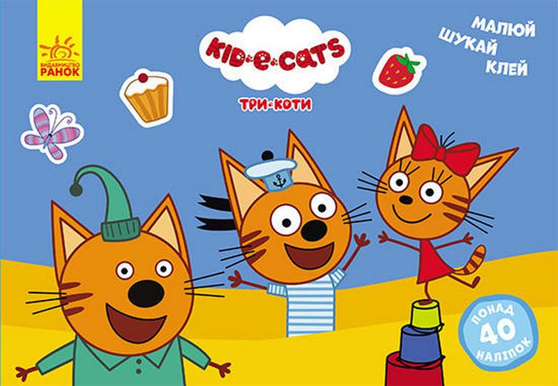 Kids-E-Cat Розвивальні вправи Три коти Малюй шукай клей понад 40 наліпок Ранок. Книжки містять наліпки, елементи для розфарбовування, цікаві завдання на кмітливість, логіку і тренування уваги та пам’яті.