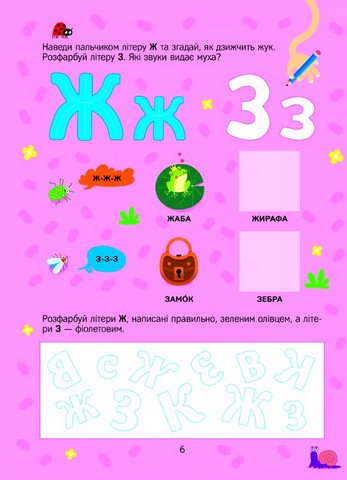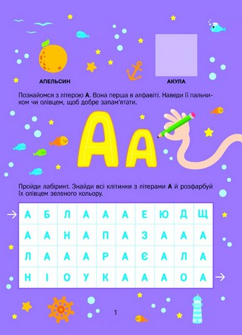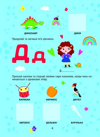 Із цією книжкою маленькі розумахи познайомляться з абеткою, писатимуть маленькі й великі друковані літери та навіть прочитають свої перші слова! Цікаві завдання та яскраві малюнки допоможуть малечі розвинути уяву та асоціативну пам’ять, а разом із наліпками дітлахи потренують дрібну моторику. Веселих занять!