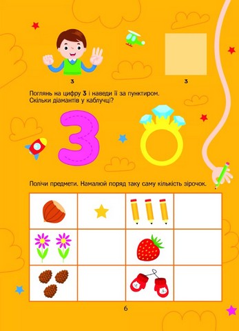Із цією книжкою маленькі розумахи познайомляться з цифрами, лічитимуть від 1 до 10 і навпаки та навіть розв’яжуть свої перші приклади! Цікаві завдання та яскраві малюнки допоможуть малечі розвинути уяву та асоціативну пам’ять, а разом із наліпками дітлахи потренують дрібну моторику. Веселих занять!