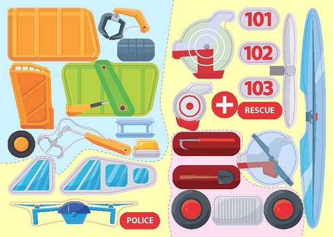 Це яскраве видання обов’язково сподобається маленьким розумникам, оскільки дасть їм змогу створити власні моделі спеціального транспорту. Кмітливі проектувальники потренуються збирати пожежну й поліційну машини, сміттєвоз та евакуатор, машину швидкої допомоги й евакуаційний вертоліт. Барвисті наліпки та нестандартний формат сприятимуть розвитку творчого мислення, фантазії, уяви, уваги та дрібної моторики.