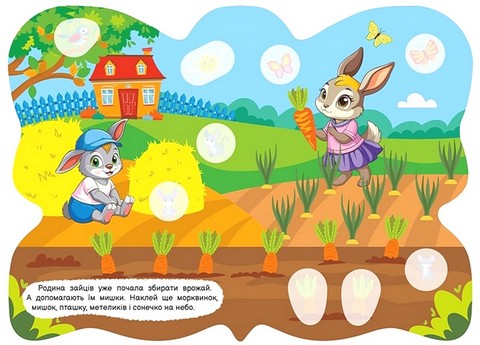 На сторінках даної книги малюки зустрінуть улюблених тваринок і за допомогою наліпок поринуть разом із ними в дивовижні пригоди. Також яскраві наліпки допоможуть дитині потренувати дрібну моторику, розвинути увагу, уяву, логічне мислення та посидючість.