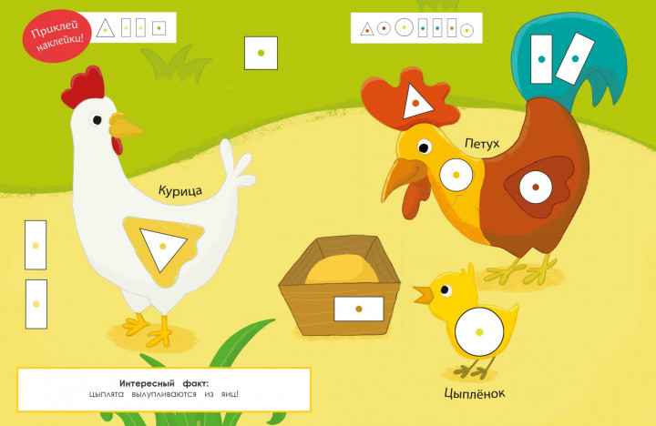 Животные фермы Веселые наклейки ПЕТ. Изучать формы, цвета, названия животных и узнавать интересные факты о них, играть в наклейки-всё это возможно благодаря книгам серии "Весёлые наклейки".
