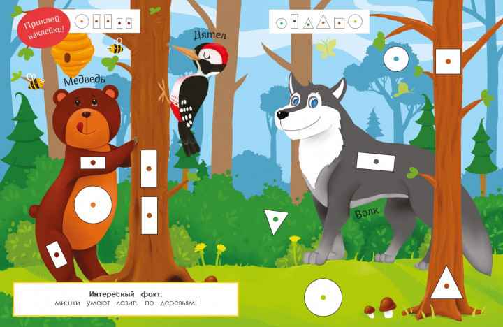 Животные леса Веселые наклейки ПЕТ. Изучать формы, цвета, названия животных и узнавать интересные факты о них, играть в наклейки всё это возможно благодаря книгам серии "Весёлые наклейки".