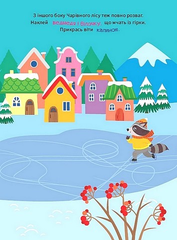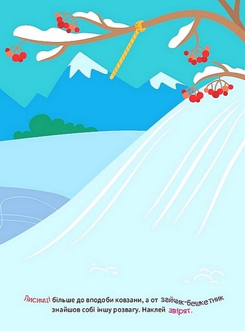 Неймовірно цікаві й сповнені пригод історії чекають на малюків на сторінках серії «Зимові канікули». Герої її книжок — кумедні звірята з Чарівного лісу — перебувають у вирі зимових розваг і веселощів! На сторінках цієї книжки діти дізнаються про забави звірят: гру в сніжки та катання з гірки, зимовий пікнік, святкову вечірку та екскурсію на лісову фабрику солодощів, а також доповнять тематичними наліпками захопливі зимові сюжети.