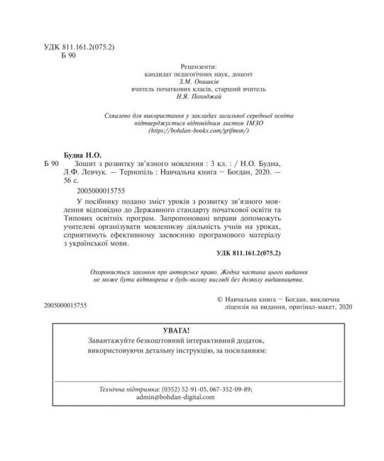Зошит з розвитку зв'язного мовлення 3 клас За програмами Савченко О. та Шияна Р. НУШ Будна Н. Богдан. У посібнику подано зміст урокiв з розвитку зв’язного мовлення вiдповiдно до Державного стандарту початкової освіти та Типових освітніх програм.