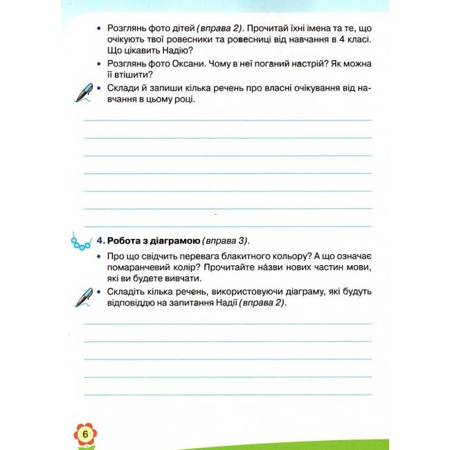 Зошит належить до навчально-методичного комплекту до підручника Українська мова та читання 4 клас автор Мар’яна Захарійчук і містить навчально-розвивальний матеріал, спрямований на розвиток у дітей зв’язного мовлення усного та писемного, уяви, образного та креативного мислення; формування мовленнєво-творчих здібностей, пізнавального інтересу до рідного слова.