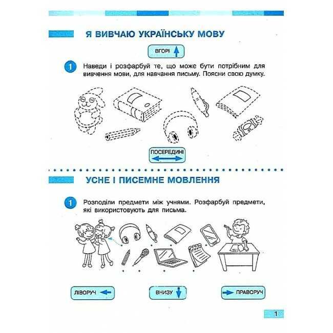 Видання є складовою навчально-методичного комплекту Українська мова 1 клас, який створено на базі підручника. Посібник складається з двої частин. Перша частина містить матеріали для першого семестру навчання: вправи на формування навички письма друкованих букв і елементів рукописних букв; завдання на розвиток критичного мислення; чек-листи для самоперевірки правильності виконання завдань. Матеріал подано в цікавій і доступній формі з урахуванням психологічних особливостей першокласників. Призначено для учнів 1 класу закладів загальної середньої освіти і вчителів початкових класів.
