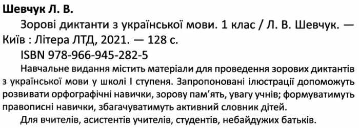 Зорові диктанти з української мови 1 клас НУШ Авт: Шевчук Л.В. Вид-во: Літера 63335