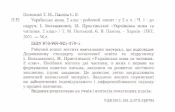 Робочий зошит Українська мова 2 клас Частина 1 НУШ До підручника Большакової І.О. Пристінської М.С. Авт: Положий Т.М. Паніна Є.В. Вид-во: ПЕТ 63065