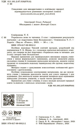 Оцінювання результатів навчання Українська мова та читання 2 клас НУШ До підручника І. Большакової Авт: Т. Семіжонова Вид-во: Ранок 111676