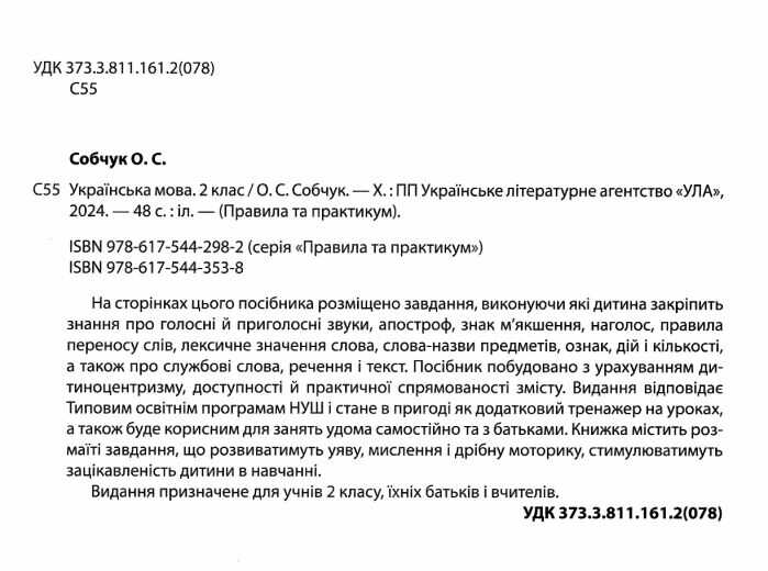 Правила та практикум Українська мова 2 клас НУШ Авт: Собчук О.С. Вид-во: УЛА 101723
